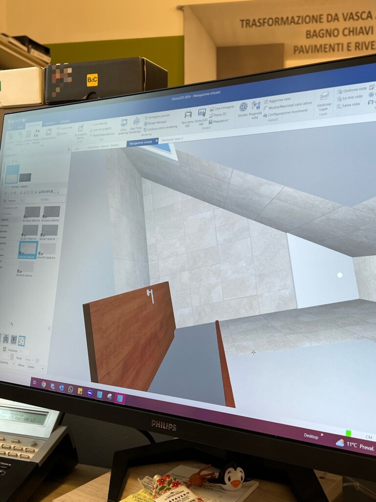 3Dでバーニョを再現してくれて、タイルをどの向きで置くか、壁はどの高さまで貼るか、必要なタイルは何枚か…など分かりやすく見せてくれる。